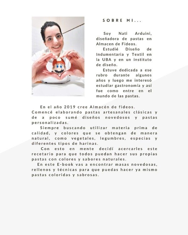 En éste recetario vas a encontrar la información que necesitas para hacer pastas de manera artesanal. Hay muchos tips, consejos y recomendaciones acompañadas de imágenes para que puedas despertar la imaginación.