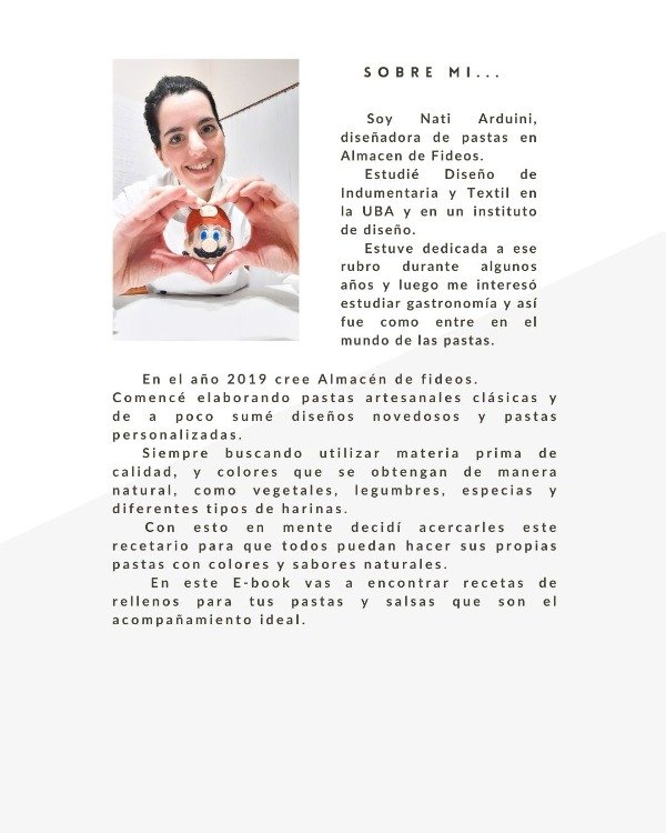 En éste recetario vas a encontrar la información que necesitas para hacer pastas de manera artesanal. Hay muchos tips, consejos y recomendaciones acompañadas de imágenes que te servirán de apoyo e inspiración.